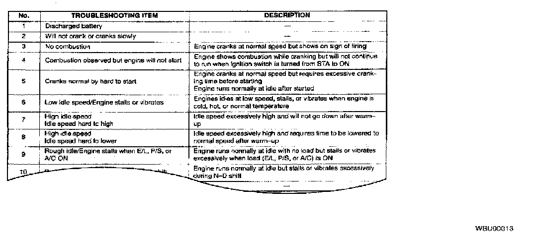 - Although inspections and adjustments are performed according to the reference column procedures, if the cause of the malfunction is discovered during basic inspection, continue the procedures as indicated in the remarks column.