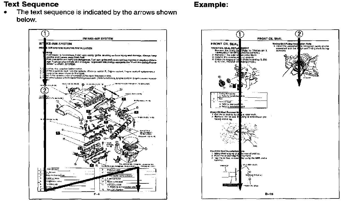 - Symptom troubleshooting shows diagnostic procedures, inspection methods, and proper action to take for each trouble symptom.