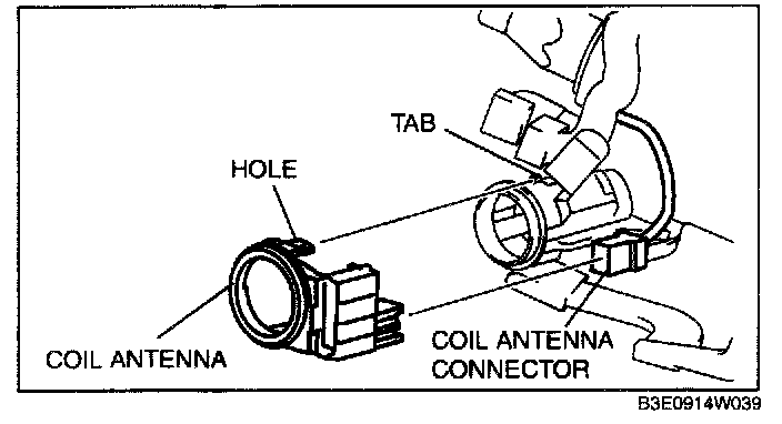 4. Detach the steering lock tabs from the holes on the coil antenna.