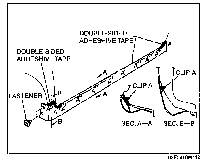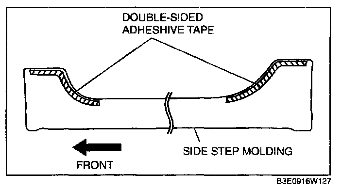 1. Attach double-sided adhesive tape to the side step molding as shown in the figure.