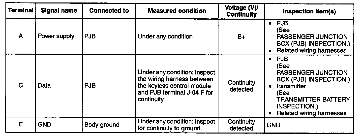 Terminal Voltage Table (Reference) Part 2: