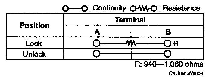 Inspect for continuity between the door lock switch terminals using an ohmmeter.
