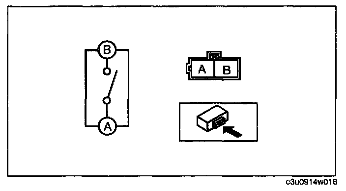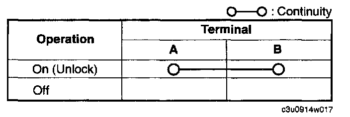 Inspect for continuity between the trunk lid key cylinder push switch terminals.