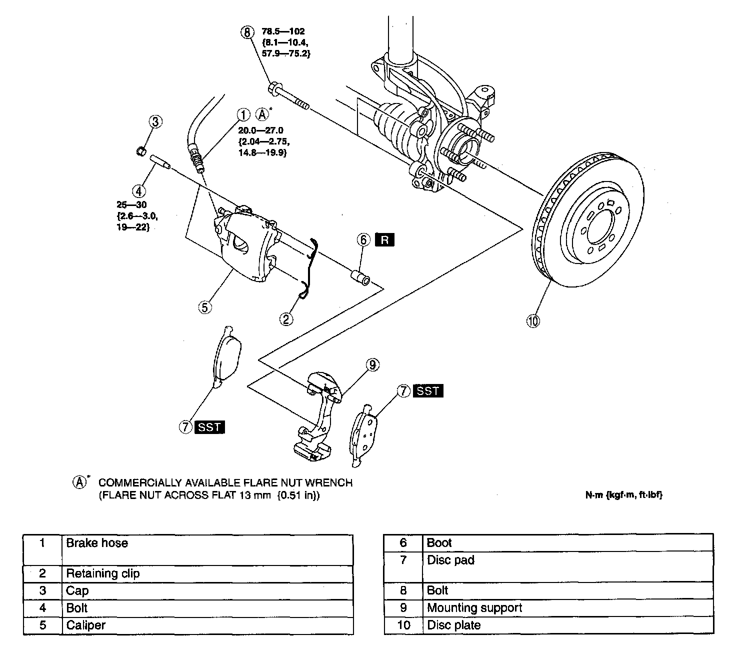 FRONT BRAKE (DISC) REMOVAL/INSTALLATION1. Remove in the order indicated in the table.