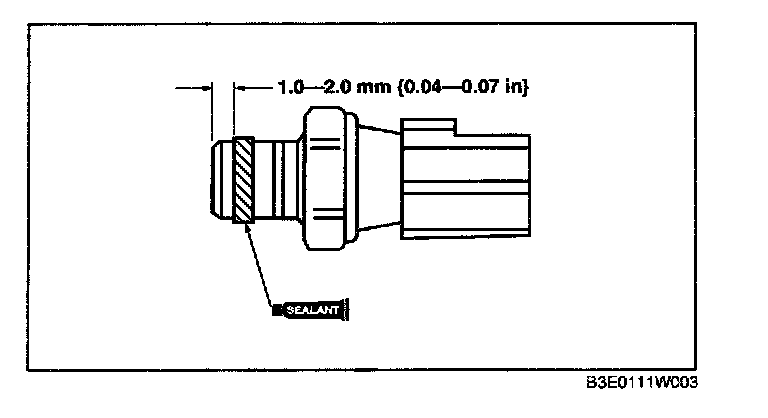 Caution: Be sure there is no sealant between 1.0 - 2.0 mm (0.04 - 0.07 in) from the end of the oil pressure switch to prevent a possible operation malfunction.