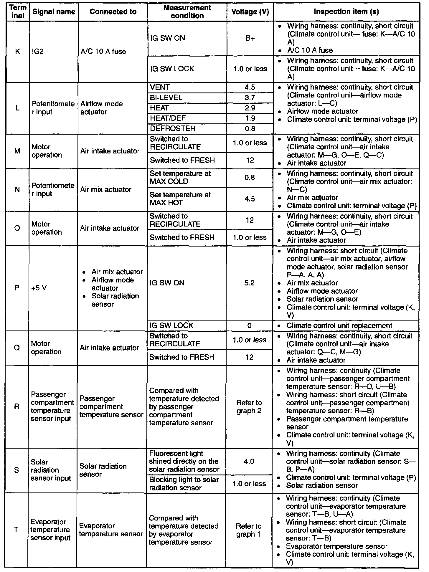 PCM Terminal Voltage Table (Reference) Part 1: