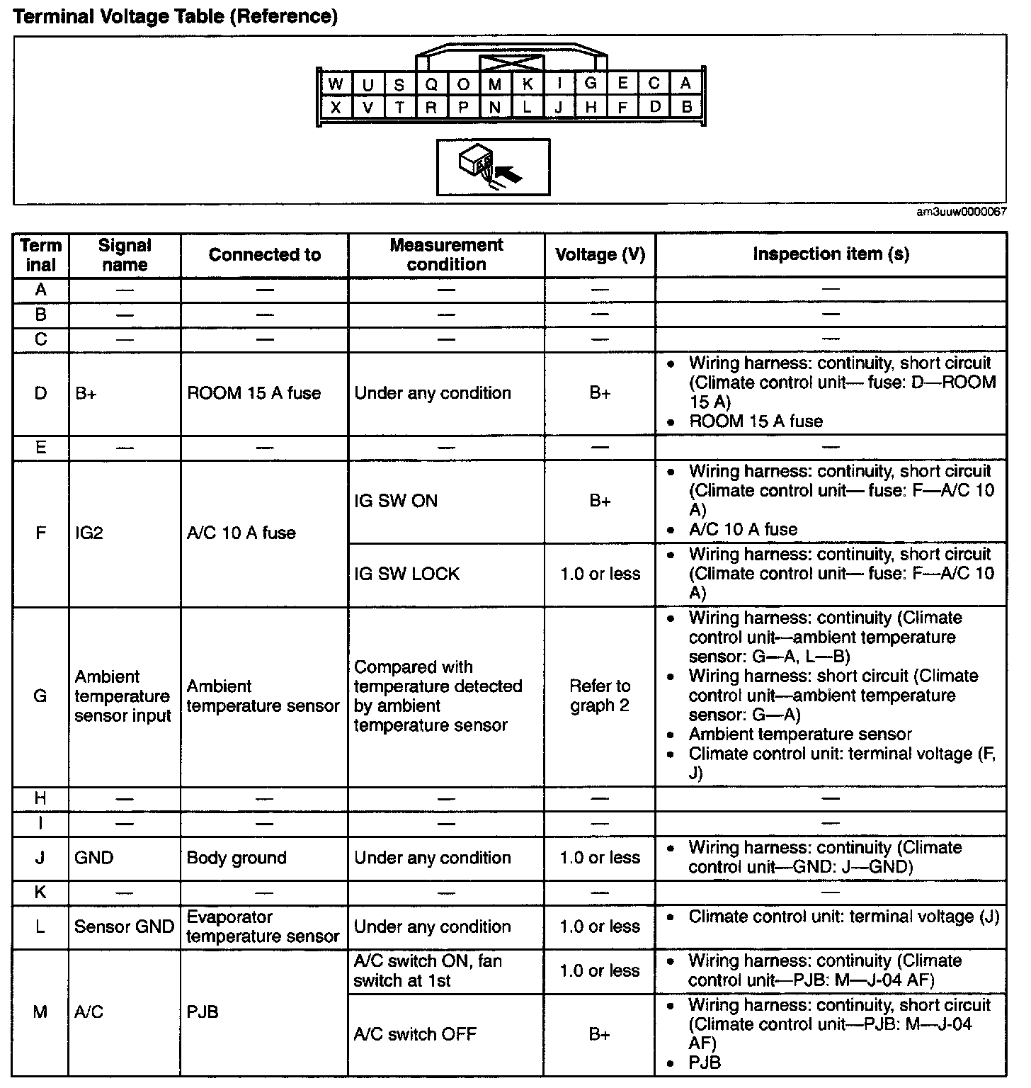 PCM Terminal Voltage Table (Reference) Part 1: