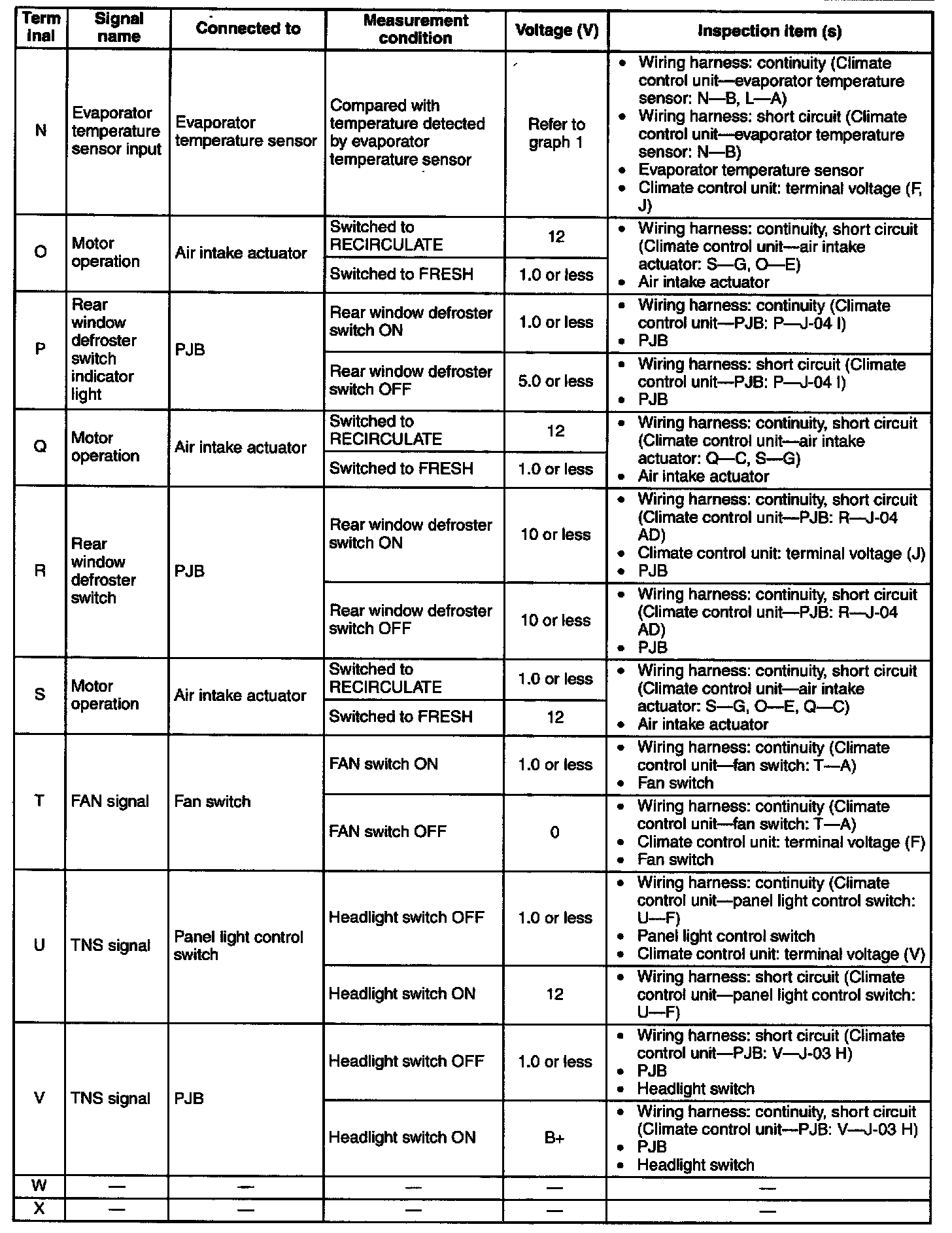 PCM Terminal Voltage Table (Reference) Part 2: