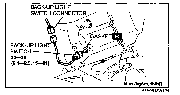 3. Disconnect the back-up light switch connector and remove the back-up light switch.