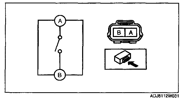 Verify that the continuity between the back-up light switch terminals is as indicated in the table.