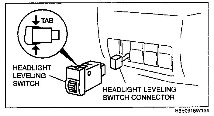 HEADLIGHT LEVELING SWITCH REMOVAL/INSTALLATION1. Disconnect the negative battery cable.