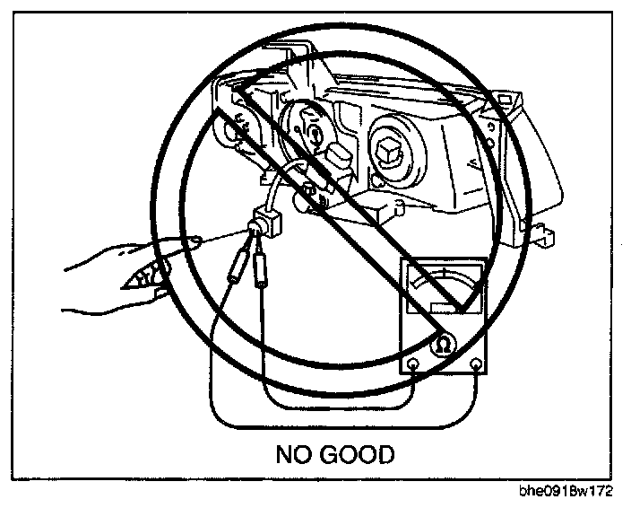 - When the headlights are on, high voltage flows around the socket and bulb. When turning on the discharge headlights while working, always leave the headlights in the vehicle installed condition to prevent electrical shock.