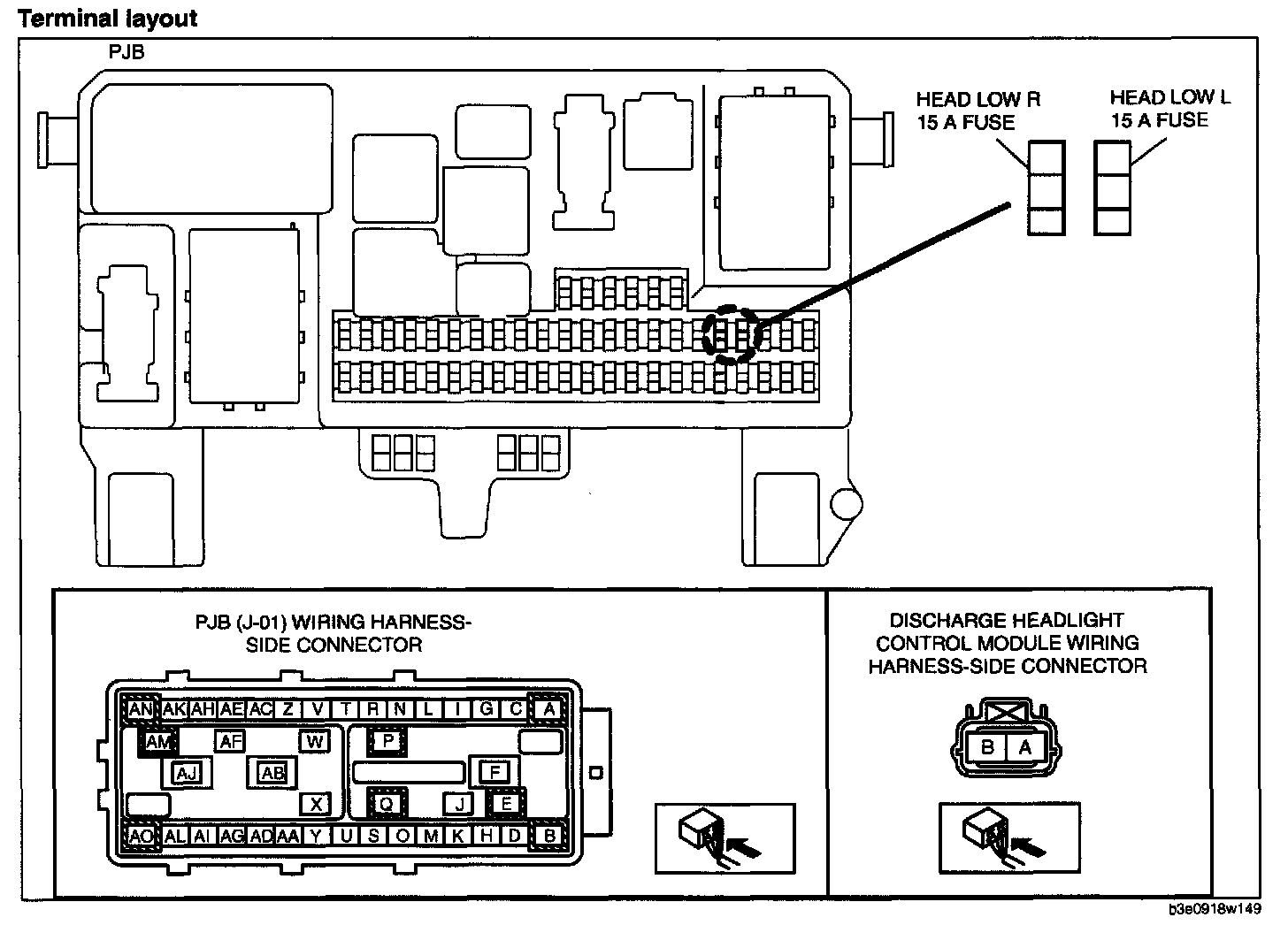 WARNING: Incorrect servicing of the discharge headlights could result in electrical shock. Before servicing the discharge headlights, always refer to the discharge headlight service warnings.