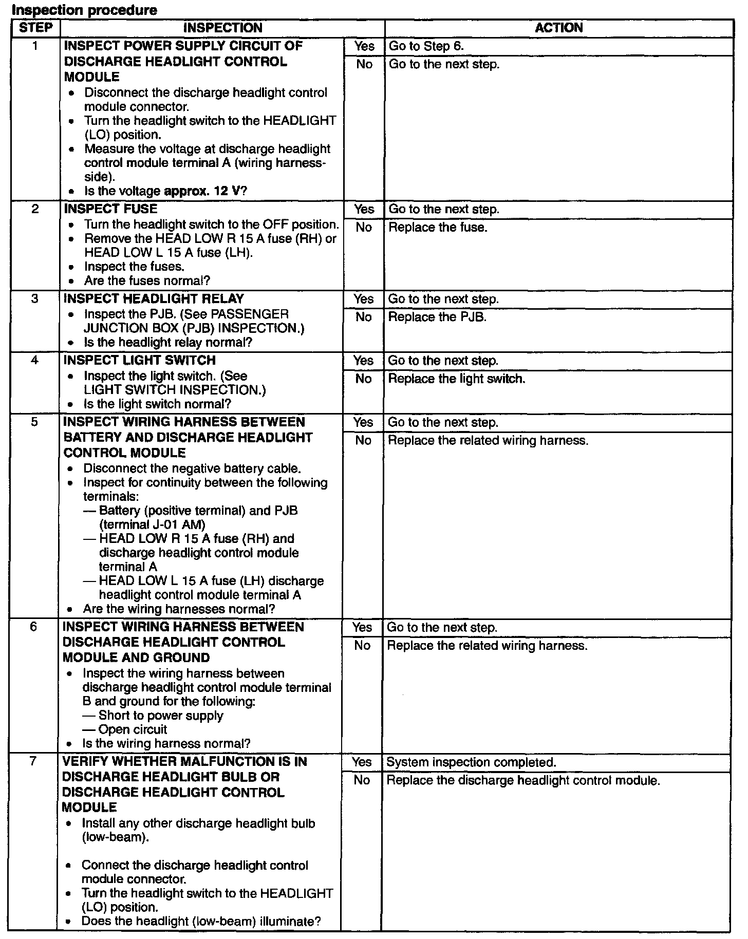 DISCHARGE HEADLIGHT SYSTEM INSPECTIONDischarge Headlight Inoperative