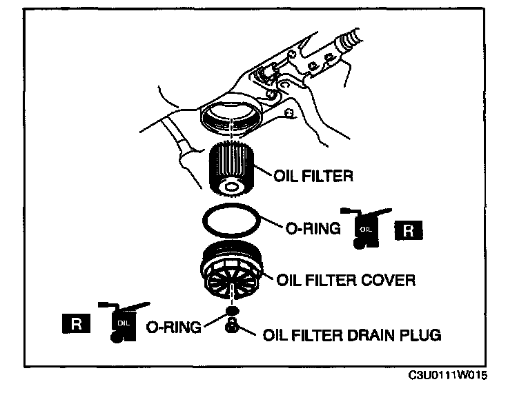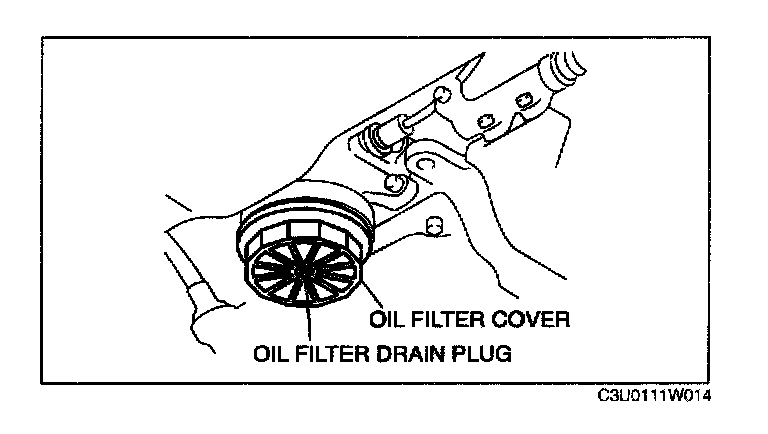 11. Tighten the oil filter cover and the oil filter drain plug.