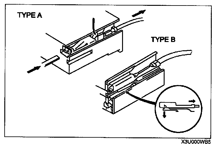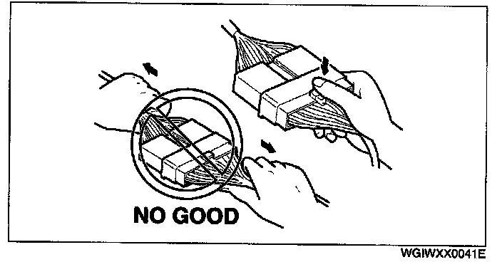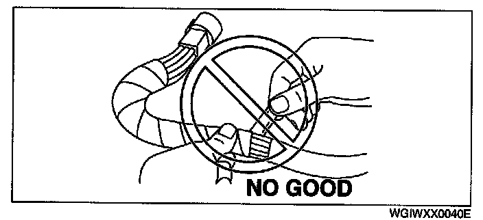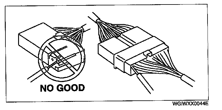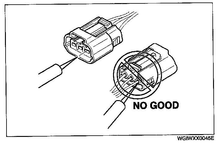 - When a tester is used to inspect for continuity or measuring voltage, insert the tester probe from the wiring harness side.