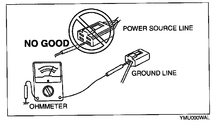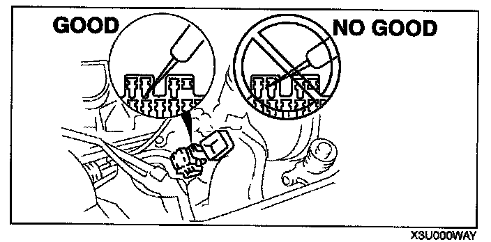 Caution: To prevent damage to the terminal, wrap a thin wire around the tester probe before Inserting into terminal.