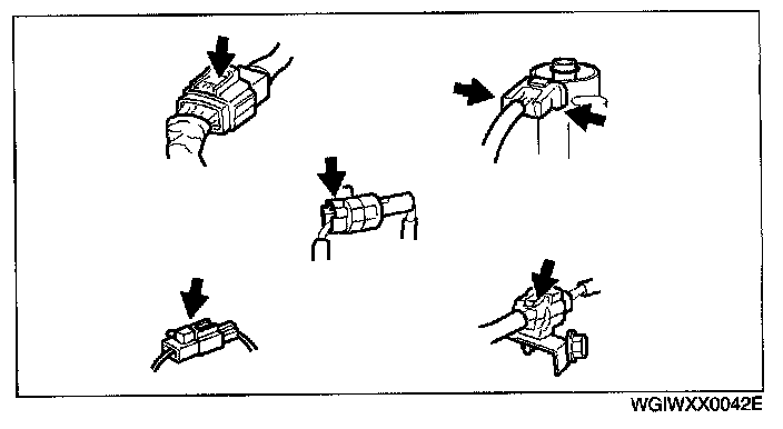- Inspect the terminals of waterproof connectors from the connector side since they cannot be accessed from the wiring harness side.