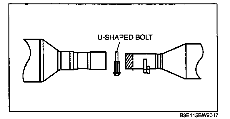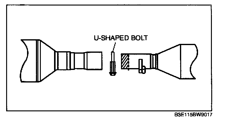 (2) Set the U-shaped bolt so that the clearance between the bolt and surrounding parts is as indicated in the figure.