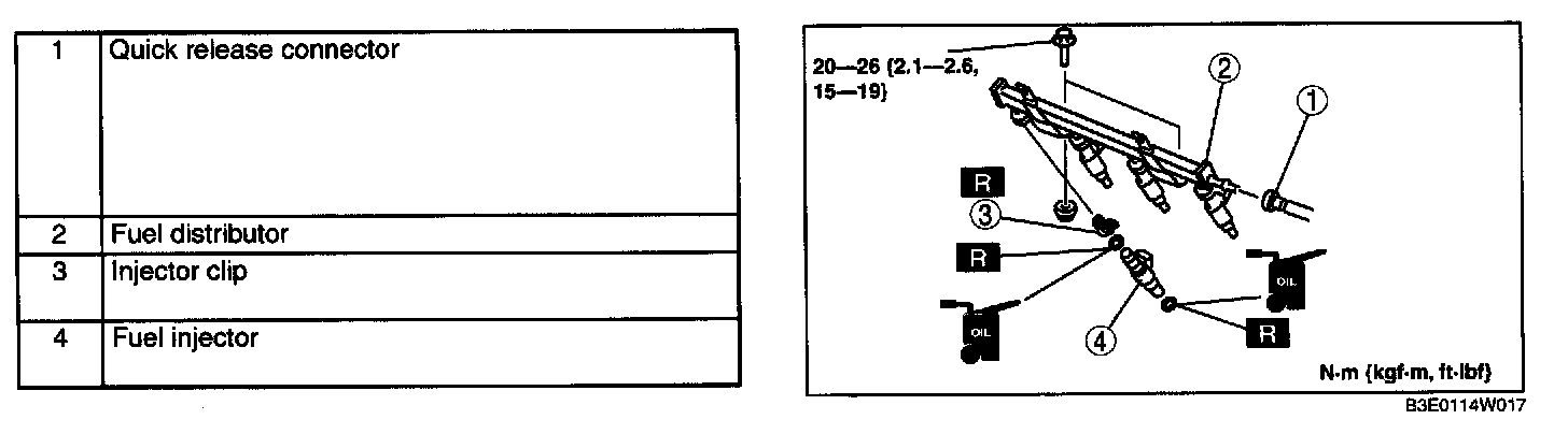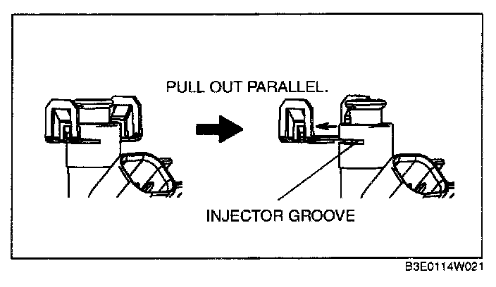 CAUTION: Use of a deformed injector clip will cause the fuel injector to be connected incorrectly and could result in fuel leakage. It will also cause the injector to rotate. Therefore, always replace the clip when the injector is removed.