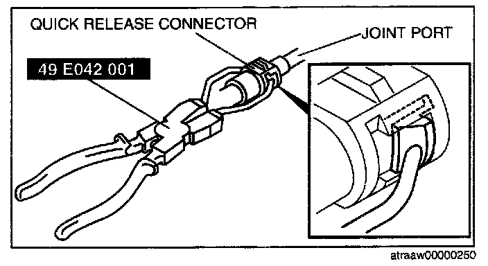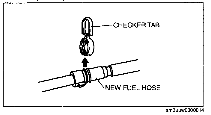 - A checker tab is integrated with the quick release connector for new fuel hoses and evaporative hoses. Remove the checker tab from the quick release connector after the connector is completely engaged with the fuel pipe.