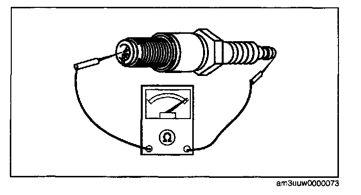 1. Measure the resistance of the spark plug using a tester as shown in the figure.