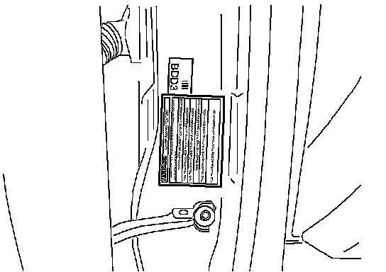5. Place the "Authorized Modification" label on the A-pillar below the tear tag in the driver door jamb. The "Authorized Modification" label will inform technicians of the PCM calibration change if future repairs are necessary.