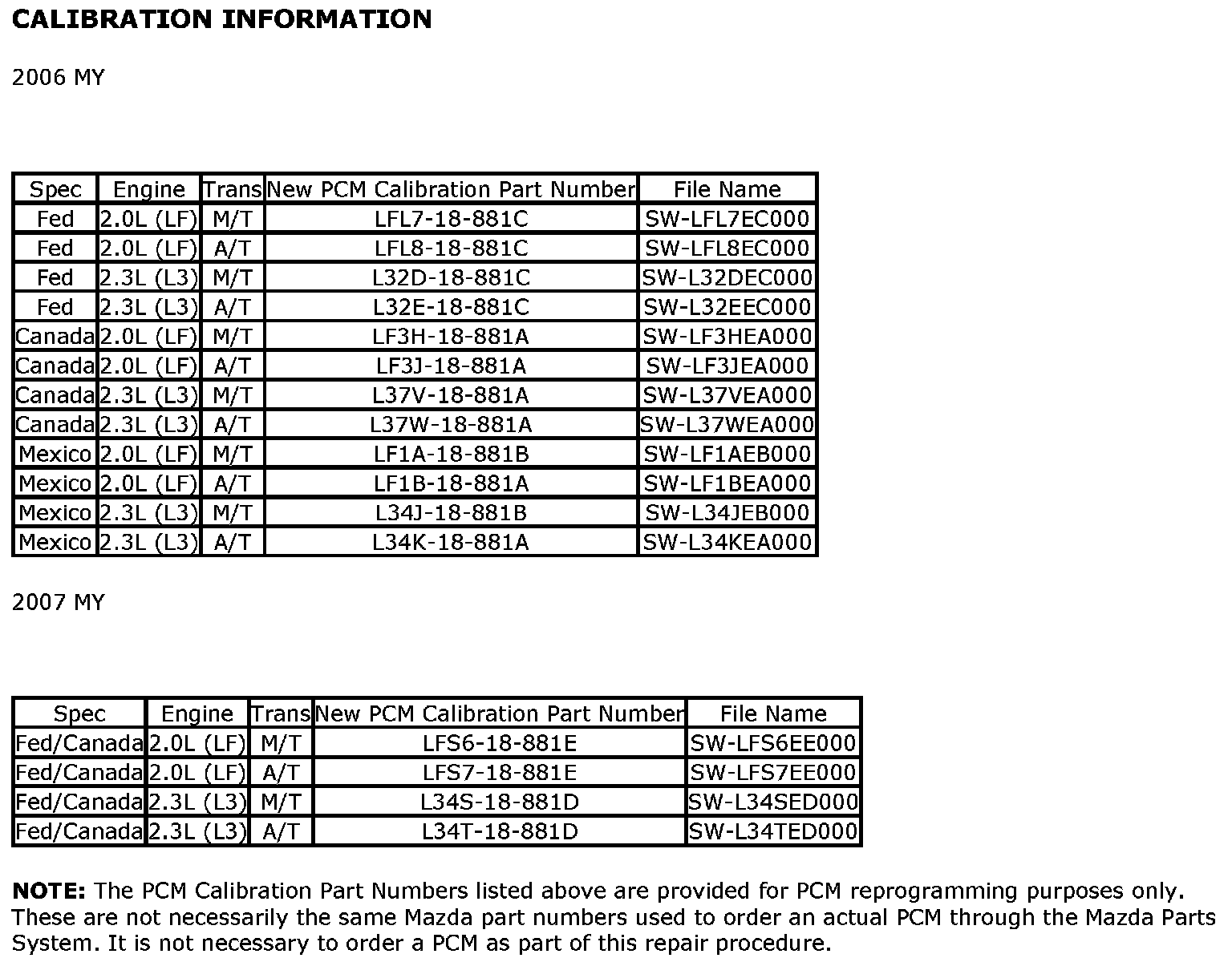 ^ Please be aware that PCM calibration part numbers and file names listed in any Service Bulletin may change due to future releases of IDS software, and additional revisions made to those calibrations for service related concerns.
