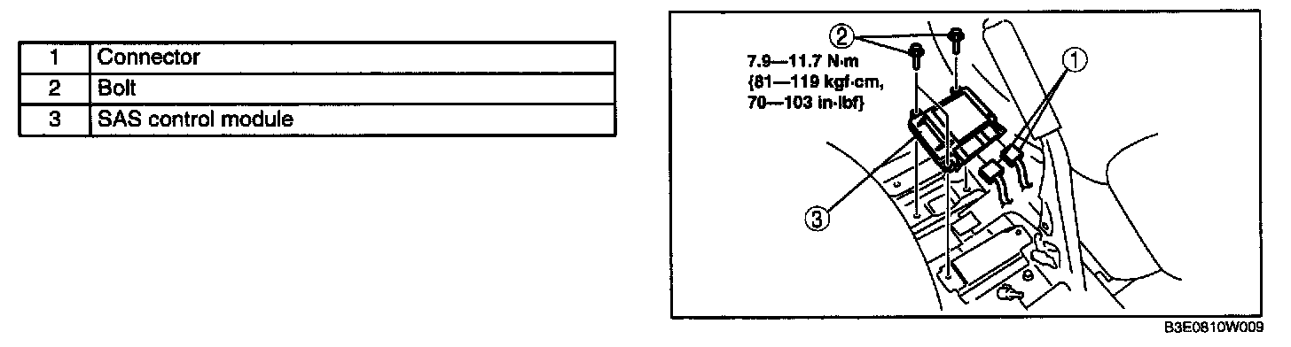 - If the SAS control module is replaced, turn the ignition switch to the ON position for 20 s or more after completing the configuration. (See SAS CONTROL MODULE CONFIGURATION.) Testing and Inspection