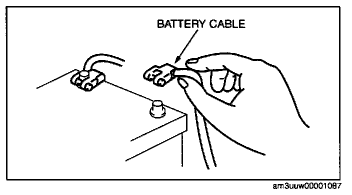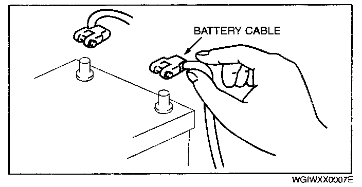 - Before disconnecting connectors or removing electrical parts, disconnect the negative battery cable.
