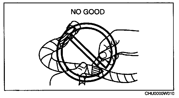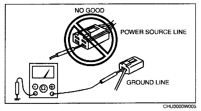 - When a tester is used to inspect for continuity or measuring voltage, insert the tester probe from the wiring harness side.