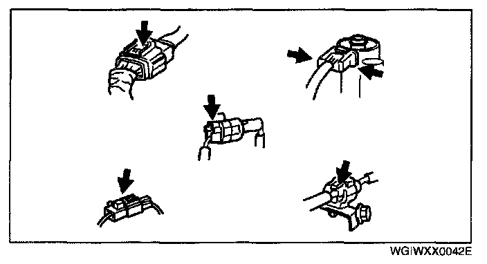 - Inspect the terminals of waterproof connectors from the connector side since they cannot be accessed from the wiring harness side.