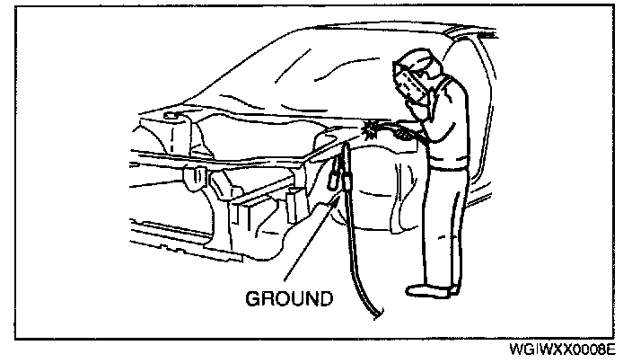 A vehicle has various electrical parts. To protect the parts from excessive current generated when welding, be sure to perform the following procedure.