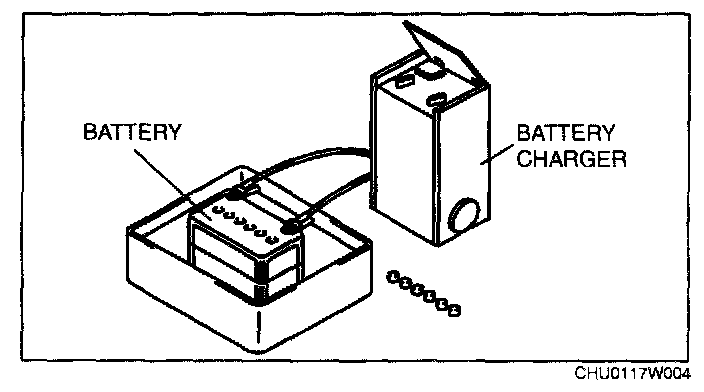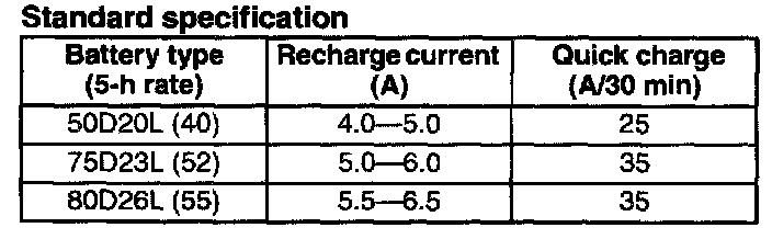 2. Connect a battery charger to the battery and adjust the charging current as shown above.