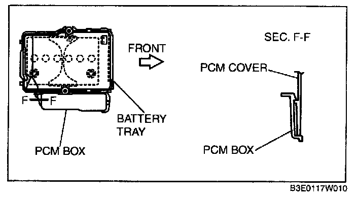 1. Install with PCM cover hooks B aligned with the PCM box holes at two points.