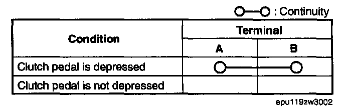 - It the continuity is not as indicated in the table, replace the starter interlock switch.