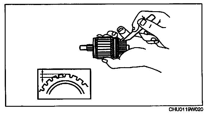 5. Measure the segment groove depth of commutator.