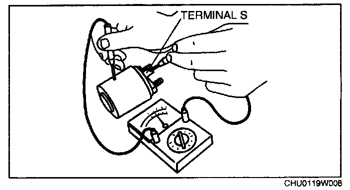 2. Inspect for continuity between terminal S and the body using a tester.