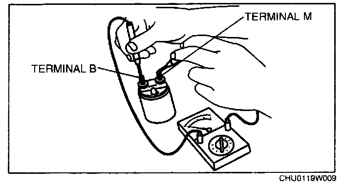 3. Verity that there is no continuity between terminals M and B using a tester.