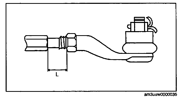 4. Rotate the tie rod and adjust so that the difference between right and left dimension L shown in the figure is less than the specification.