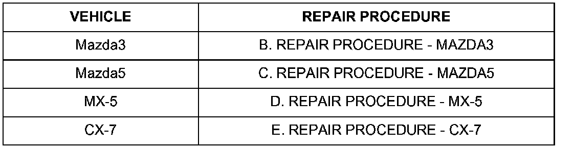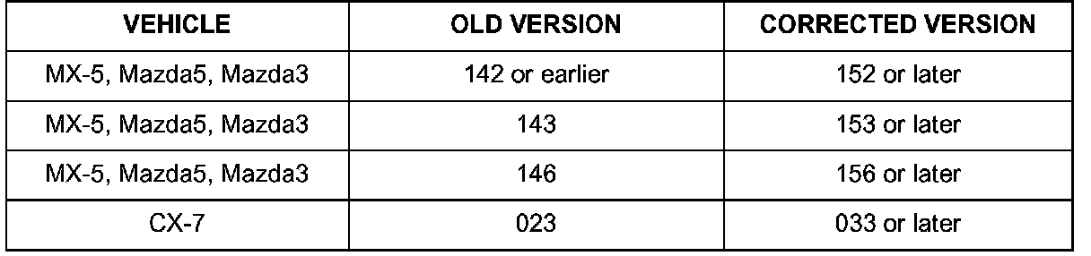 - If the software version is the old version according to the table, proceed to appropriate "REPAIR PROCEDURE" for the vehicle.
