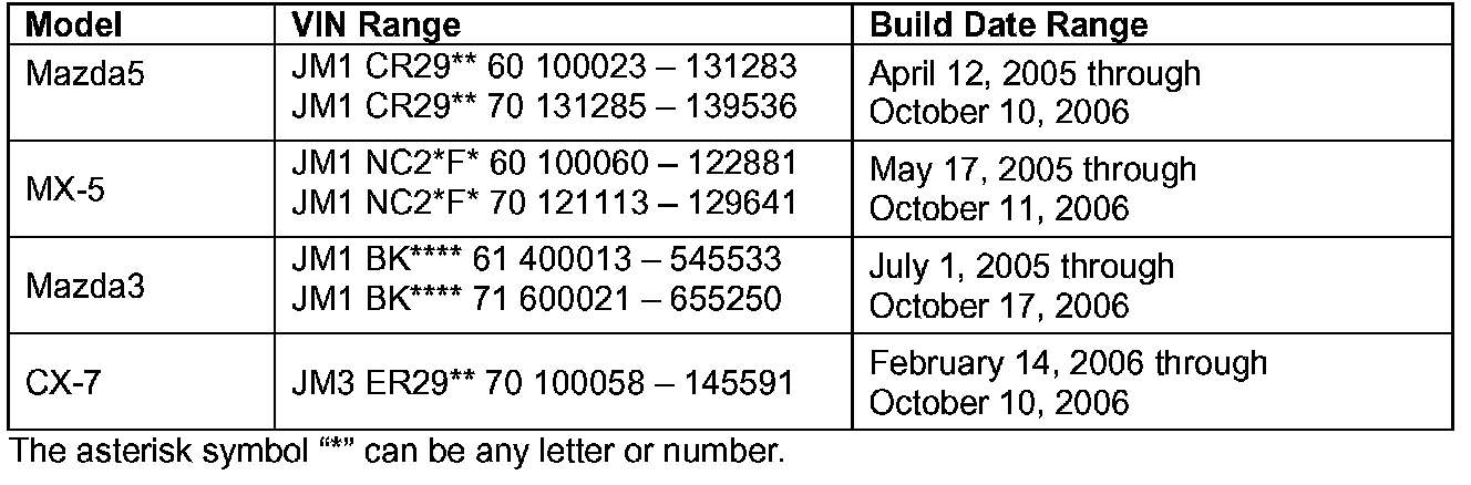 Mazda will notify U.S. owners by first class mail beginning December 1st, 2006.