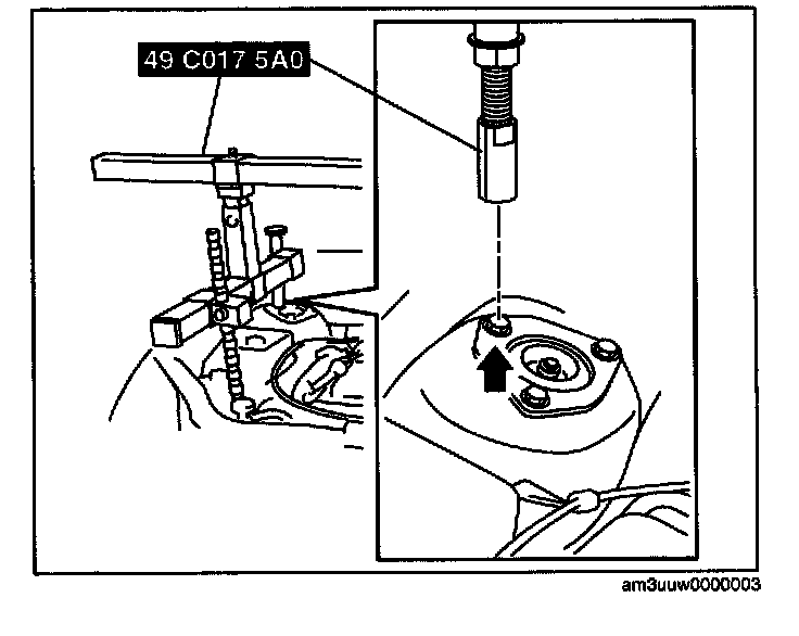 (1) Install the right rear shaft of the SST to the bolt of the right shock absorber as shown in the figure.