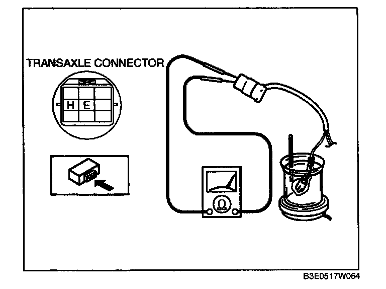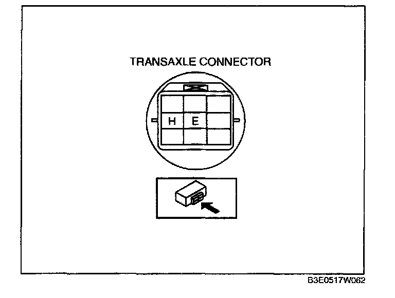 5. Measure the resistance between the transaxle connector terminals E and H.