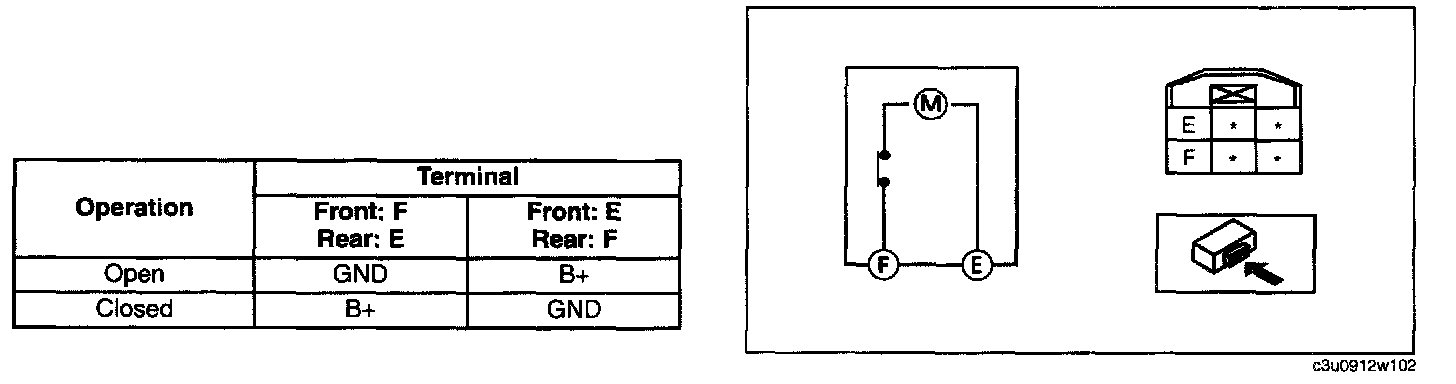 - If the power window motor does not operate as indicated in the table, replace it.