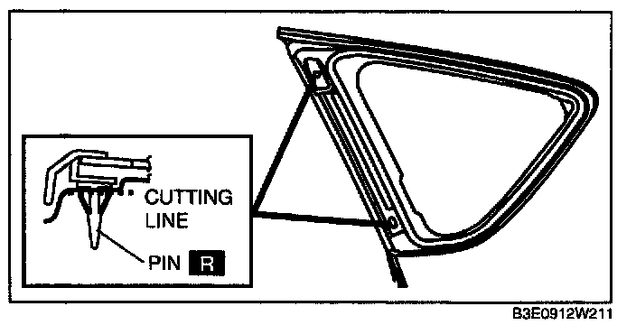 8. Fix one end of the SST (piano wire), and while pulling the other end, cut the sealant around the quarter window glass.