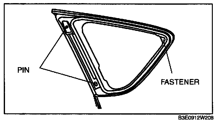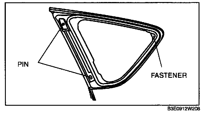 CAUTION: Proper installation of the glass may be difficult if sealant is cracked or the glass is pushed out by air pressure when a door is opened/closed with all the window glass closed. Leave all the windows open until the quarter window glass is installed completely.