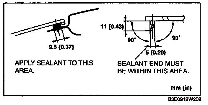 2. If the sealant has come off completely in any one place, apply some primer after degreasing, and allow it approx. 30 min to dry. Then apply 2 mm (0.08 in) thickness of new sealant.