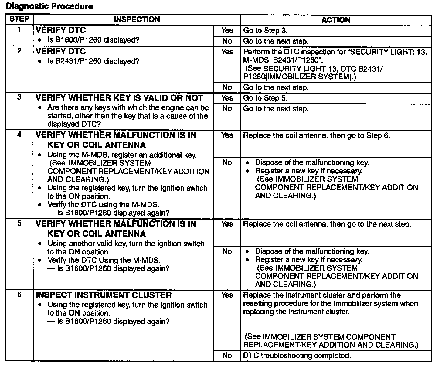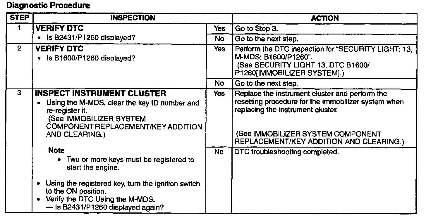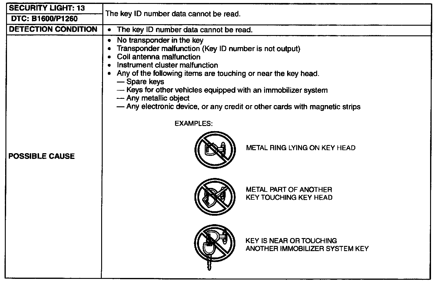 The Key ID Number Data Cannot Be Read Detection Condition/Possible Cause: