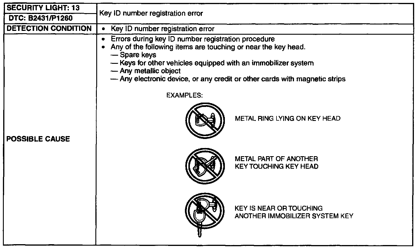 Key ID Number Registration Error Detection Condition/Possible Cause: